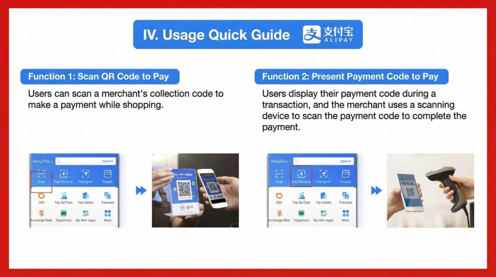 - Hotel Deposits: We strictly recommend against using Alipay for hotel security deposits. Refunds to international cards can take up to 21 days. Use a physical credit card or cash.